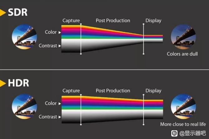 HDR(High Dynamic Range,高动态范围),是新一代显示技术标准,通过扩展亮度范围(峰值可达1000-4000尼特)和色域(Rec.2020/DCI-P3覆盖75%以上可见色彩),显著提升画面真实感。它采用10/12-bit深度和感知量化(PQ)或混合对数伽马(HLG)编码,减少色彩断层,并支持动态元数据(如杜比视界)逐帧优化亮度和对比度。HDR专为高端影视、游戏和专业制作设计,能精准还原日光、火光等高亮细节与暗部纹理,但需兼容的拍摄、传输及显示设备协同工作以实现最佳效果。